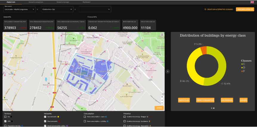 Les élus peuvent ainsi mesurer l’impact énergétique exact des futurs projets d’aménagements du territoire, et ainsi d’opérer les choix les plus pertinents. Grâce à ce jumeau numérique simulable, ils peuvent en effet tester virtuellement de nombreux scénarios d’aménagements, qu’il s’agisse de construire de nouveaux équipements, de rénover des bâtiments ou encore d’installer un réseau de chaleur urbain.
