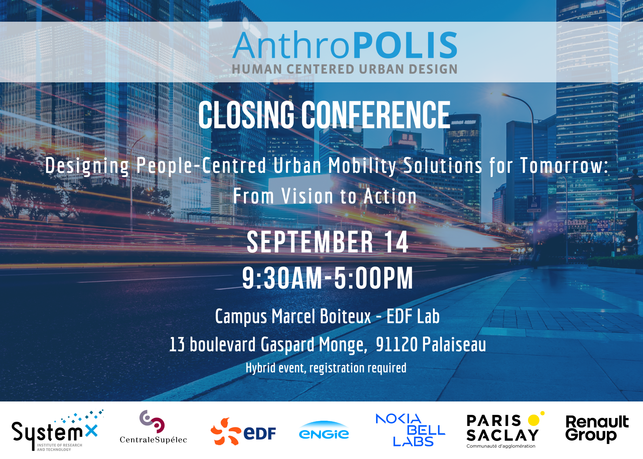 These are the questions the Anthropolis chair has addressed over the past four years. Contributors will present a set of integrative approaches obtained through research: assistance in mobility design thanks to the creation of future scenarios, active mobility within the framework of MaaS, and multi-agent simulation of new mobility services. These contributions will be enriched by the result of collaboration with Sweden, China, Egypt and Morocco. The conference will feature keynotes and round-tables, including moment for discussions around posters and demonstrations.