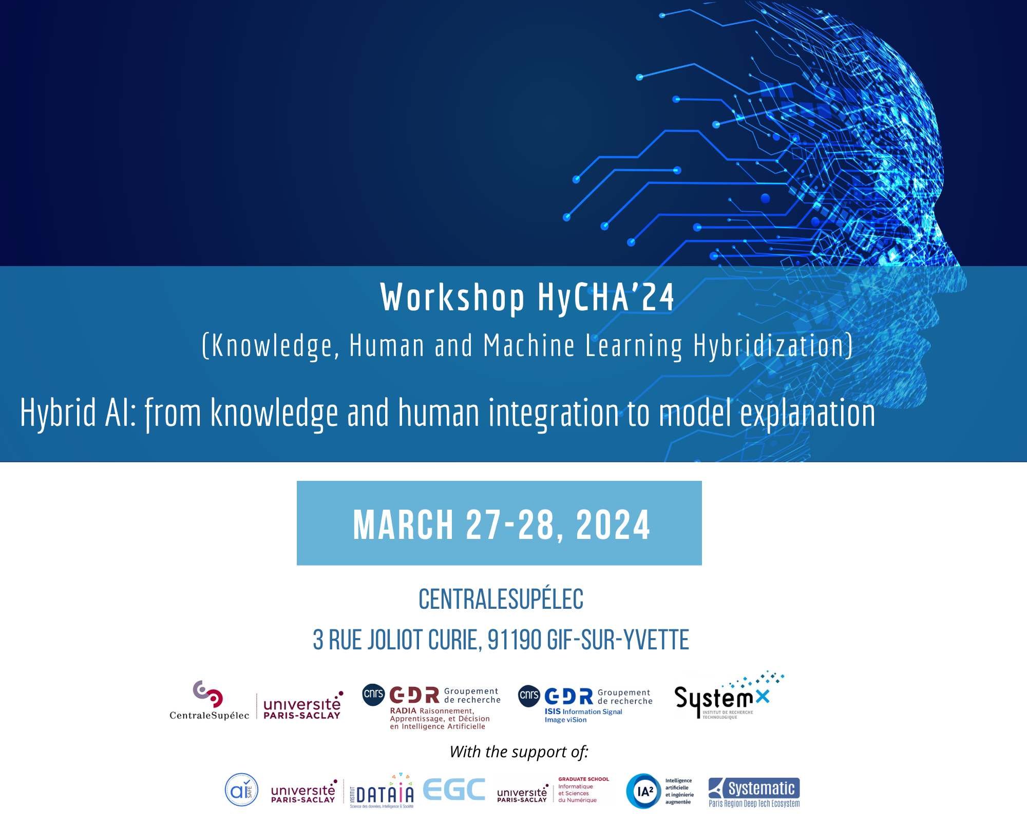 These days, organized around the theme Hybrid AI: from knowledge and human integration to model explanation, will be held on March 27 and 28, 2024 at CentraleSupélec (Gif-sur-Yvette).